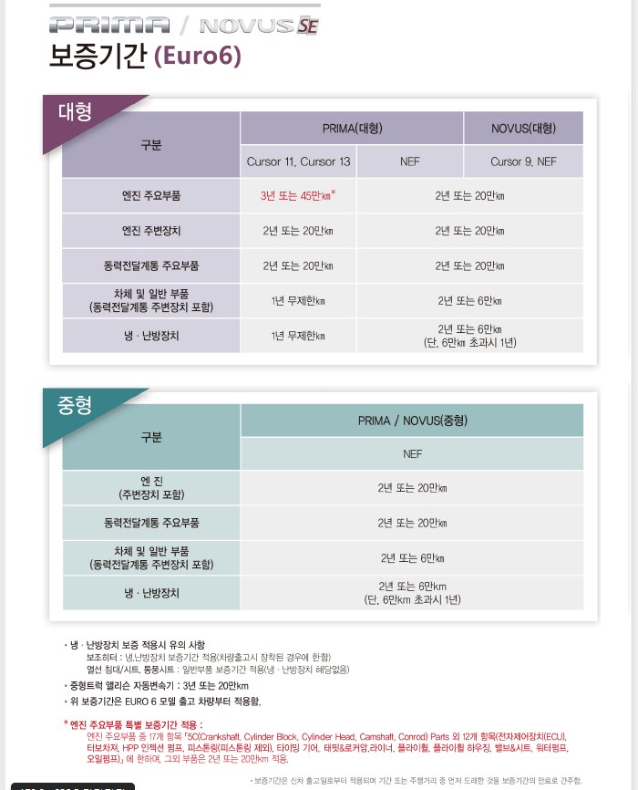 타타대우상용차 PRIMA/NOVUS 보증기간(Euro6)