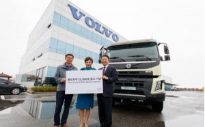 <출처>사진 -볼보트럭 코리아(주) 볼보트럭코리아가 수입 상용차 브랜드 최초로 누적 판매 대수 2만5000대를 돌파했다. 볼보트럭코리아는 최근 경기 평택 종합출고센터에서 2만5000번째 출고 모델인 볼보 FMX 덤프트럭 구매 고객 김혜경 씨를 초청해 차량 출고식을 진행했다. FMX 덤프트럭은 건설 작업에 적합한 건설장비 트럭이다. 볼보트럭코리아가 수입 상용차 브랜드 최초로 누적 판매 대수 2만5000대를 돌파했다. 김영재 볼보트럭코리아 대표(오른쪽)와 2만5000번째 구매 고객 김혜경 씨(가운데)가 기념촬영을 하고 …